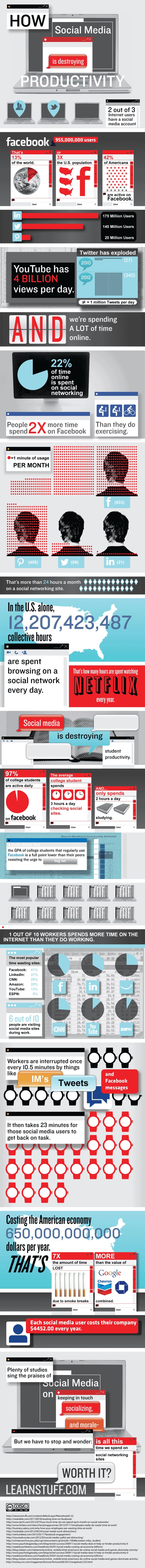 According to Mashable’s summary via LearnStuff, social media costs the U.S. economy $650 billion. Check out the infographic they put together: